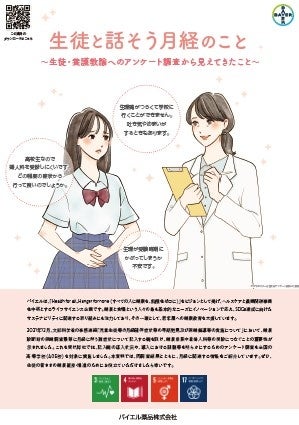 月経随伴症状は生徒の学校生活に支障を来たす場合があり、また、放置することにより生徒の健康と将来に影響を及ぼす可能性があります。バイエル薬品は養護教諭を支援するため、資料「生徒と話そう月経のこと~生徒・養護教諭へのアンケート調査から見えてきたこと~」を制作しました。資料には、①月経随伴症状がもたらす学生生活への影響②学校健診を機会とした生徒の月経随伴症状の把握とその対策③月経チェックシート──を紹介しており、右記コードよりご覧いただけます。