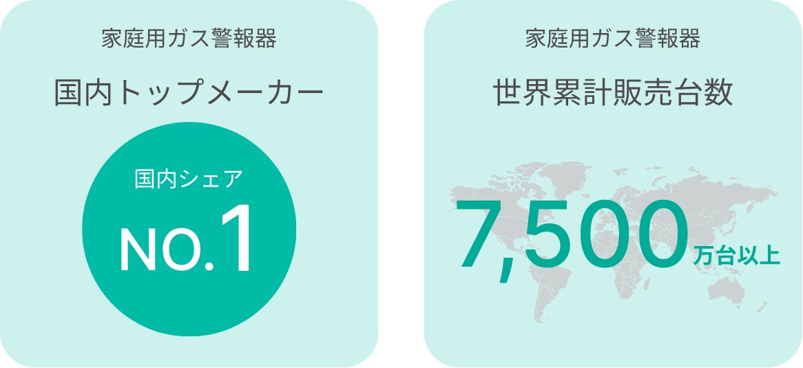 以来独自のセンサ技術を活かした家庭用ガス警報器を累計7,500万台以上販売し、業界シェアNo.1の実績を築き上げてきました。