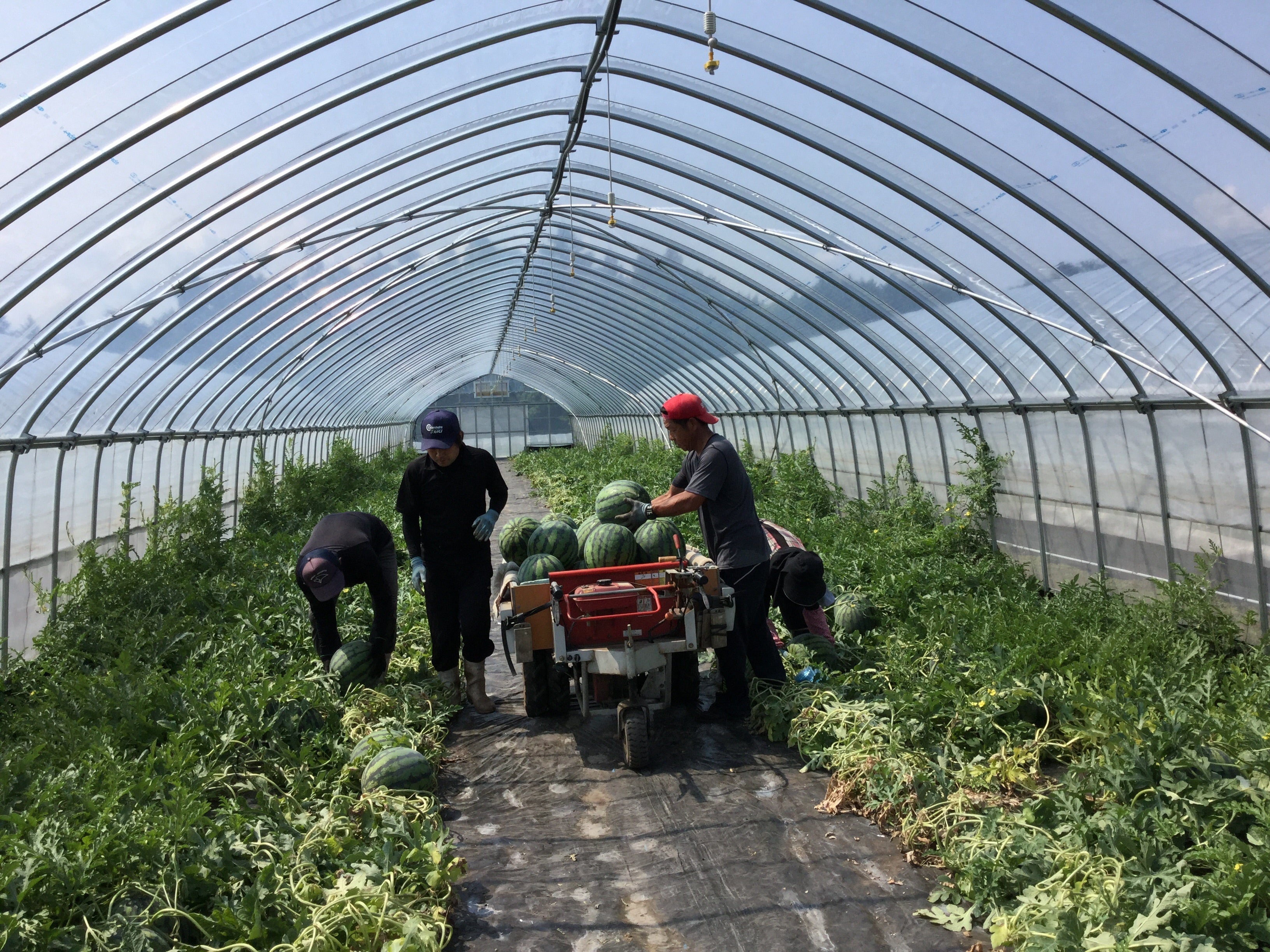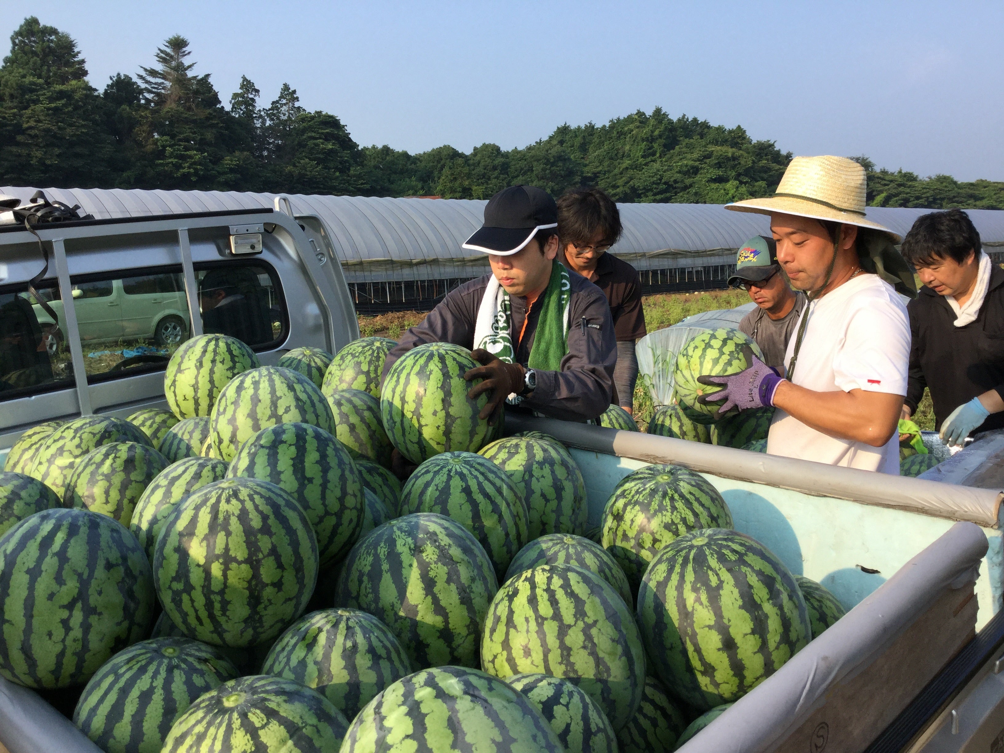 日照時間が長く朝と夜の気温差が大きい春に交配し実を太らせることで糖をたくさん蓄えたおいしいスイカが、6月から7月にかけて全国へ出荷されます。