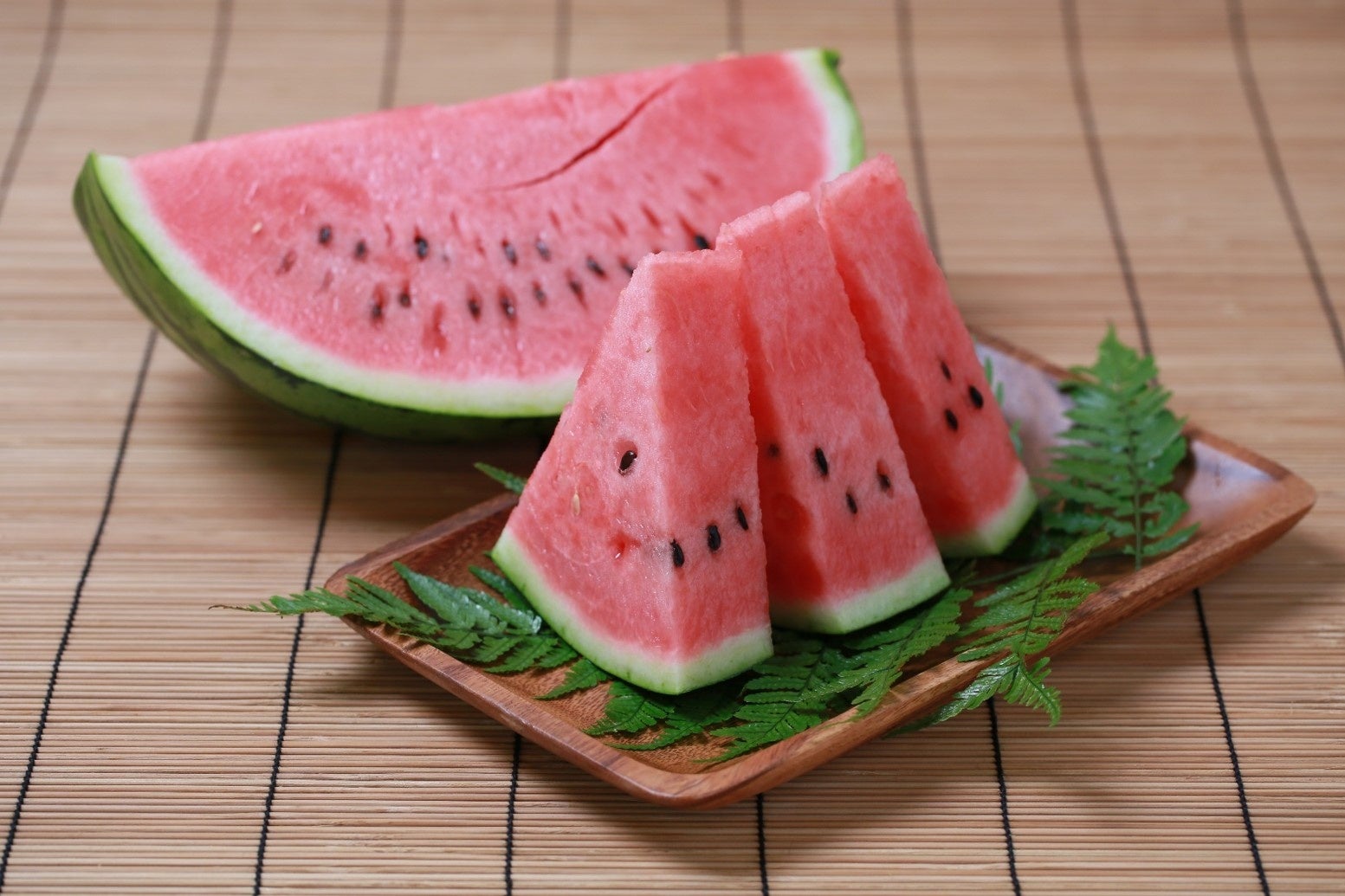 「スイカ」の栄養について、その瑞々しさからほとんどが水分と思われがちですが、昔から漢方としても利用されていたように、果汁には利尿作用があるカリウムなどミネラルも豊富。暑い夏には体の熱を下げ尿と一緒に余分な塩分を排泄するのでむくみ改善に良いと言われています。また、糖分と水分をバランスよくとれるため熱中症対策にもおすすめです。