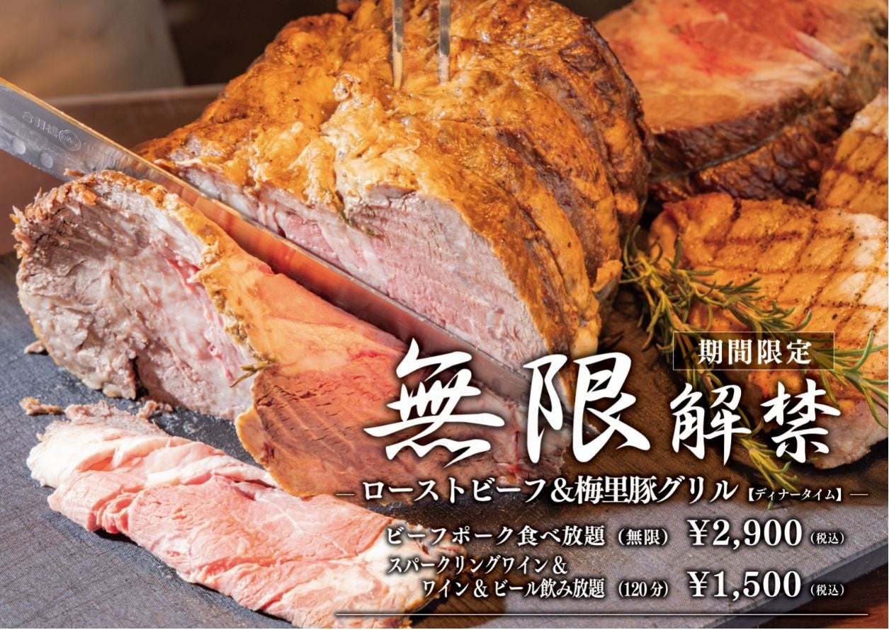 ・料金 ローストビーフと梅里豚グリルの食べ放題