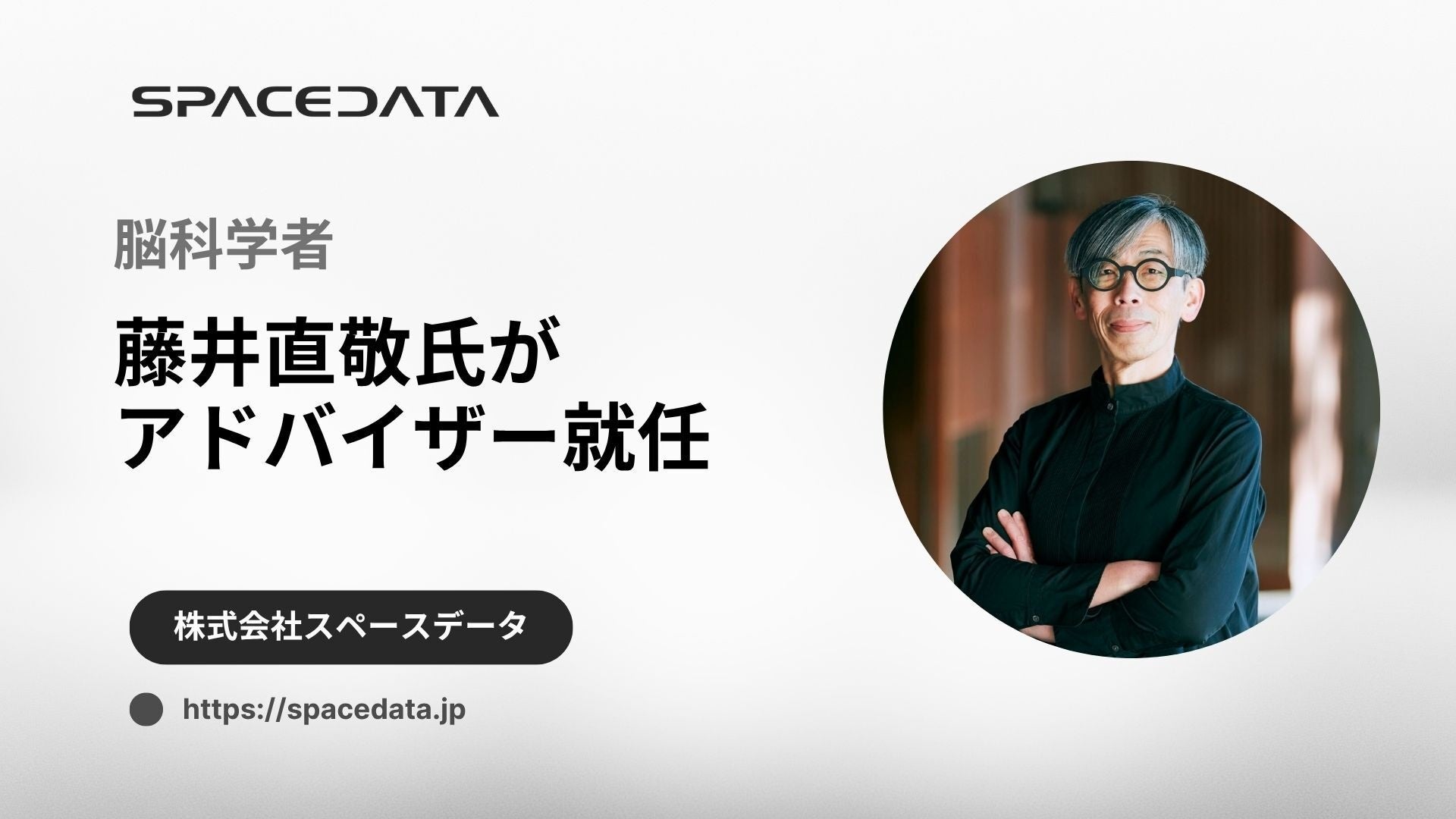 株式会社スペースデータ(本社:東京都港区、代表取締役社長:佐藤航陽、以下 スペースデータ)は、脳科学とテクノロジーの融合による人間拡張の第一人者である藤井直敬(ふじい なおたか)氏が、当社のアドバイザーに就任したことをお知らせいたします。藤井氏の専門的知見を通じて、宇宙空間における人間の認知・感覚・行動設計に関する研究開発を加速し、宇宙を「暮らしの場」とするための基盤づくりを推進してまいります。
