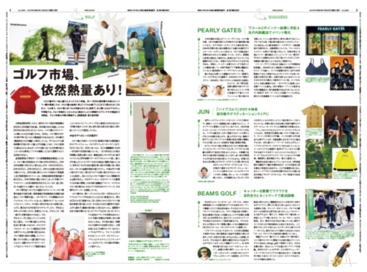 「パーリーゲイツ(PEARLY GATES)」や「ビームス ゴルフ(BEAMS GOLF)」、「ハイプゴルフ」「ジュン&ロペ(JUN&ROPE)」など、ゴルフアパレルの有力ブランドに、商況と今後の注力策を聞きました。また、「クワイエット ゴルフ(QUIET GOLF)」「サーズデイゴルフィンブッチャーズ(THURSDAY GOLFIN BUTCHERS)」といった、注目の新進4ゴルフブランドも紹介。コロナバブル中は数シーズンで200前後ものゴルフブランドが生まれたといいますが、今も継続している新進ブランドはしっかりファンをつかんでいます。