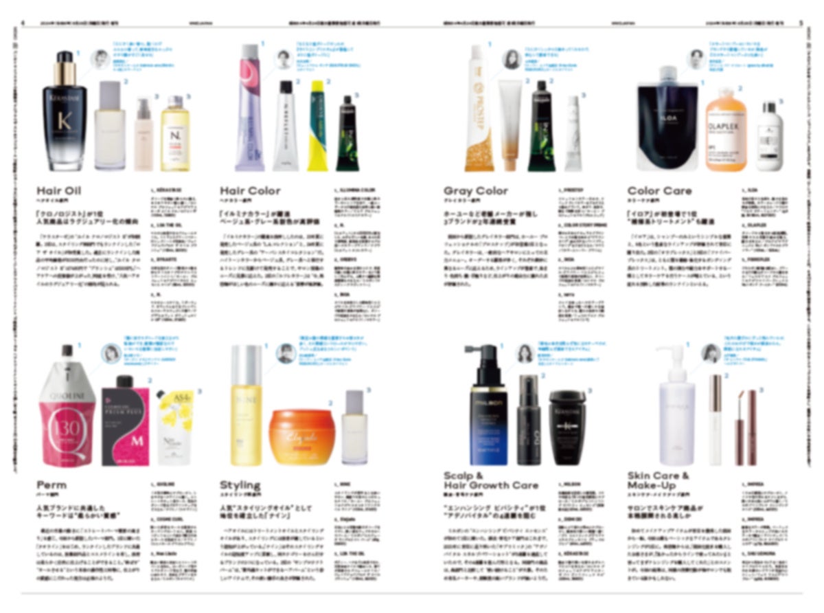 ビューティ付録では、「WWDBEAUTY 2024 ヘアサロン版ベストコスメ」の結果を発表します。今回は全14部門のアワードを設定し、都内の人気ヘアサロン50軒の美容師157人に、各カテゴリーで「2023年下半期~24年上半期に実際に使ってみて良かった商品」についてアンケート調査を実施しました。