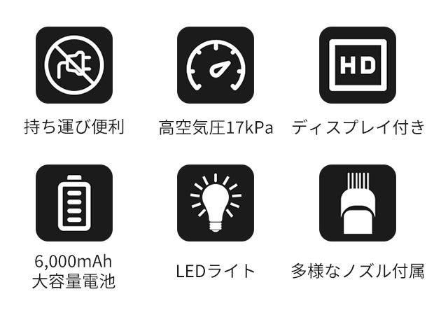 空気噴射のほか、強いエアー吸引も「CF01」の主な特徴です。噴射されて表に出たホコリをハンディングクリーナーのように簡単に吸引できます。空気噴射・吸引を交代で活用して車や部屋の汚れを一気にきれいにしましょう!