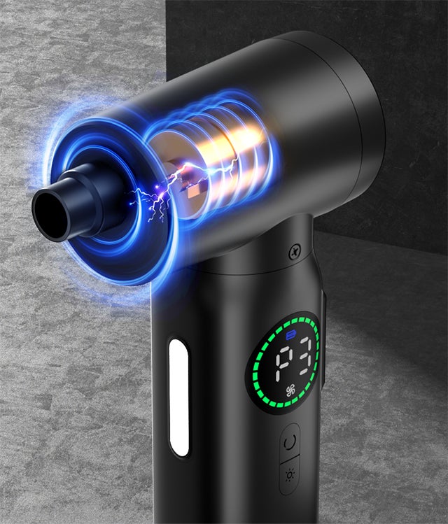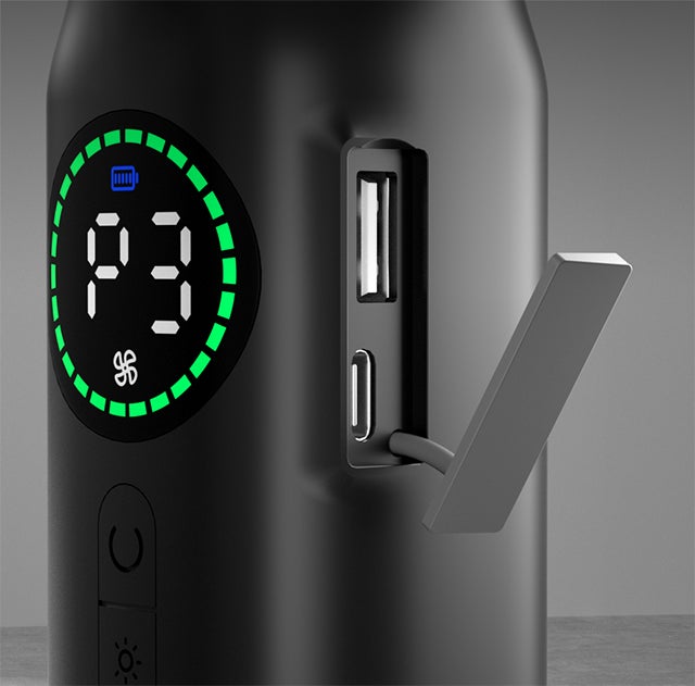 「CF01」には3段階の風速レベルが搭載されており、ボタンを1回押すたびに、本体側面のスクリーン画面の数字が変わり、風速が上がります。強力な内蔵モーターにより、最大空気圧は驚きの17kPa、最大空気流量は400L/minに達します。食べ物の屑、ホコリなどはもちろん、スマホまでも簡単に吸い上げられます!