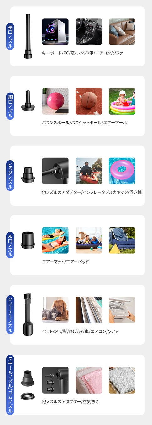 クリーナーだけではなく、「CF01」はエアーポンプとしてもちゃんと活躍できます。浮き輪やボールはもちろん、エアーベッドやエアープールなど大型のものでも素早く膨らませます。口で・手動式で膨らませるより衛生的で同行の家族や友人たちに作業完了まで長く待ってもらう必要も一切なし!