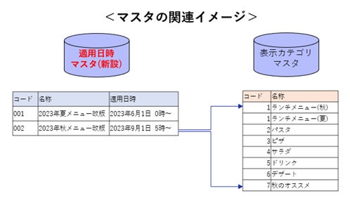 ※本機能を使用するためには、今回新設された「適用日時マスタ」を作成頂き予約設定したい表示カテゴリマスタと紐づけをする必要があります。