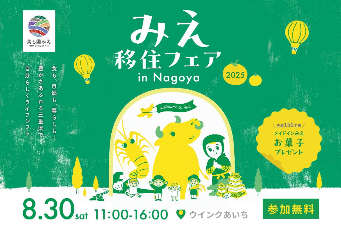 三重県の移住イベント「みえ移住フェア」を8月30日に名古屋、10月26日に大阪、12月6日に東京にて開催します。