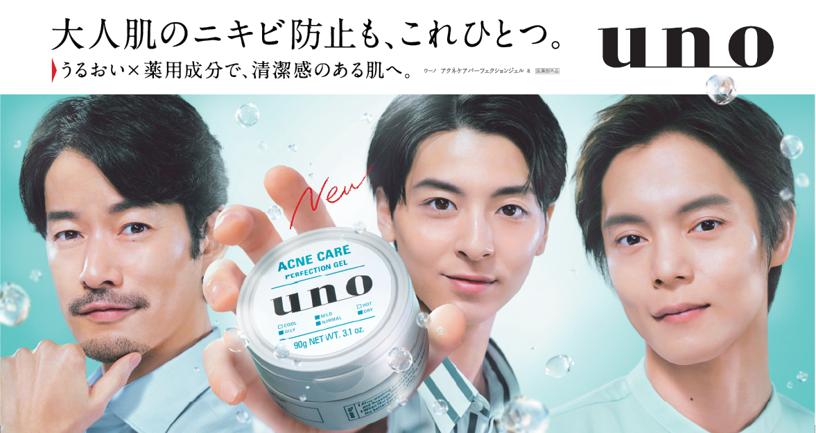 男性の肌研究を極める『uno(ウーノ)』から、大人肌のニキビ防止も、これひとつ「ウーノ アクネケア パーフェクションジェル」誕生!