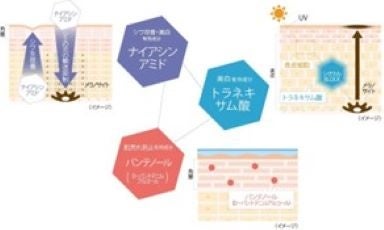 *¹ 3つの有効成分「ナイアシンアミド」、「トラネキサム酸」「D-パントテニルアルコール」を配合したシワ改善有効成分配合の医薬部外品として日本初。