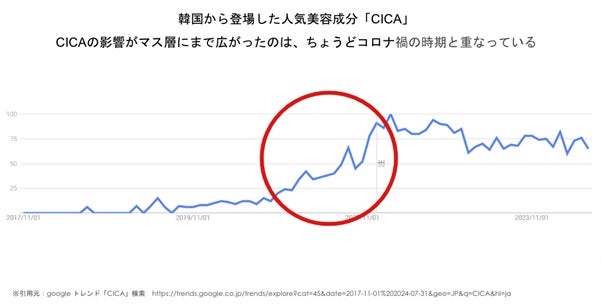 最近では成分軸でスキンケアを選ぶ人が増加する傾向にあり、そのきっかけとなったのはコロナ禍、韓国から登場した人気美容成分CICAだと推測をたてました。