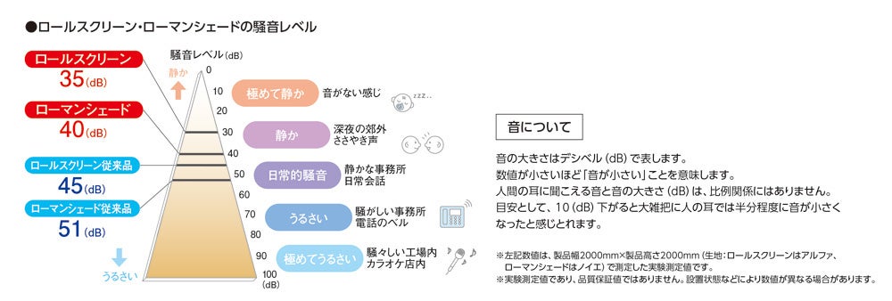 オフィス・店舗・施設向けのロールスクリーン「ラルク 電動大型60タコスⅡ」やローマンシェード「クレアス 電動大型タコスⅡ」の動作音を従来比で約20%低減し、より快適で使いやすくなりました。静音化により、ホテルやオフィス、コミュニティースペースなどで、より静かな環境を提供できるため、従業員の集中力を維持し、コミュニケーションの質を向上させることで、業務の効率化や従業員のストレス軽減に貢献します。