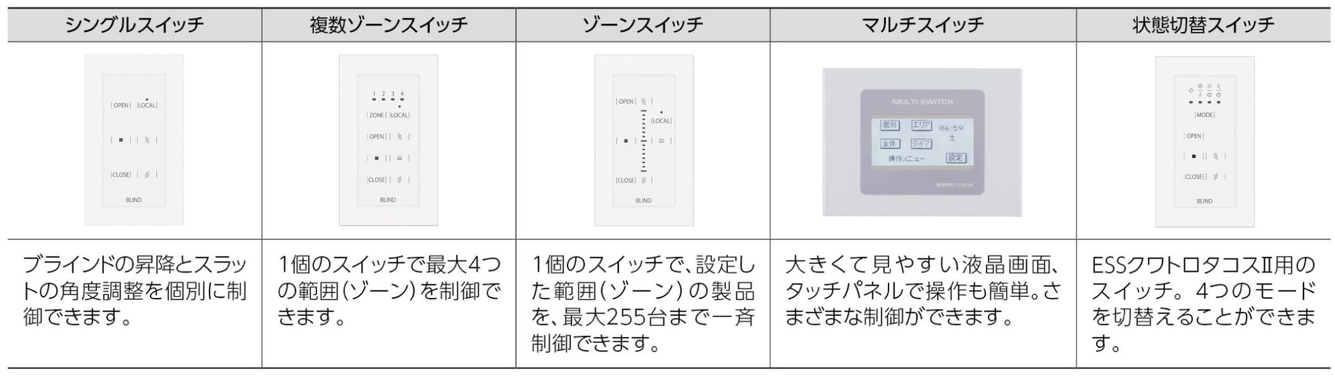 <スイッチラインナップ> ※製品により対応するスイッチは異なります。