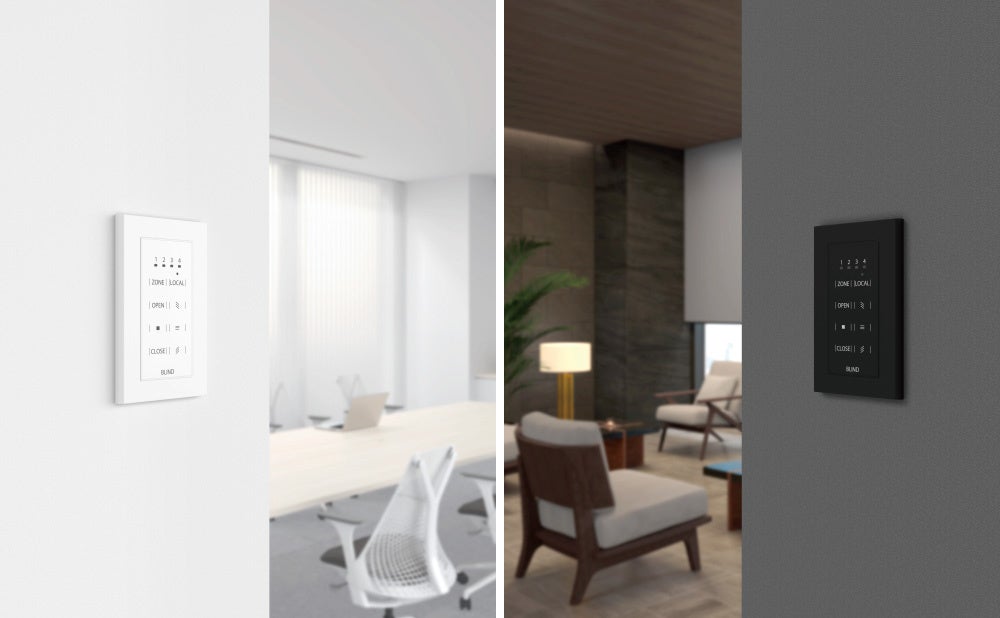 昨今のトレンドである、シンプルでスタイリッシュながら住宅にも使用できる意匠性の高いデザインにリニューアルしました。カラーは「ホワイト」に加え、需要の高い「ブラック」を追加し、壁紙や床、天井などのインテリアに合わせてカラーを選択いただけるようになりました。また、直線的でシンプルなデザインにすることで、オフィスやホテル、店舗にも馴染むようなデザイン性を兼ね備えました。そのほか、複数の製品を操作できるスイッチには、ブラインドのスラット角度を一斉に水平にする「水平ボタン」や、ファブリック製品の生地の高さをあらかじめ登録した位置に再現できる「フリーポジション機能」など、便利な機能を搭載しました。