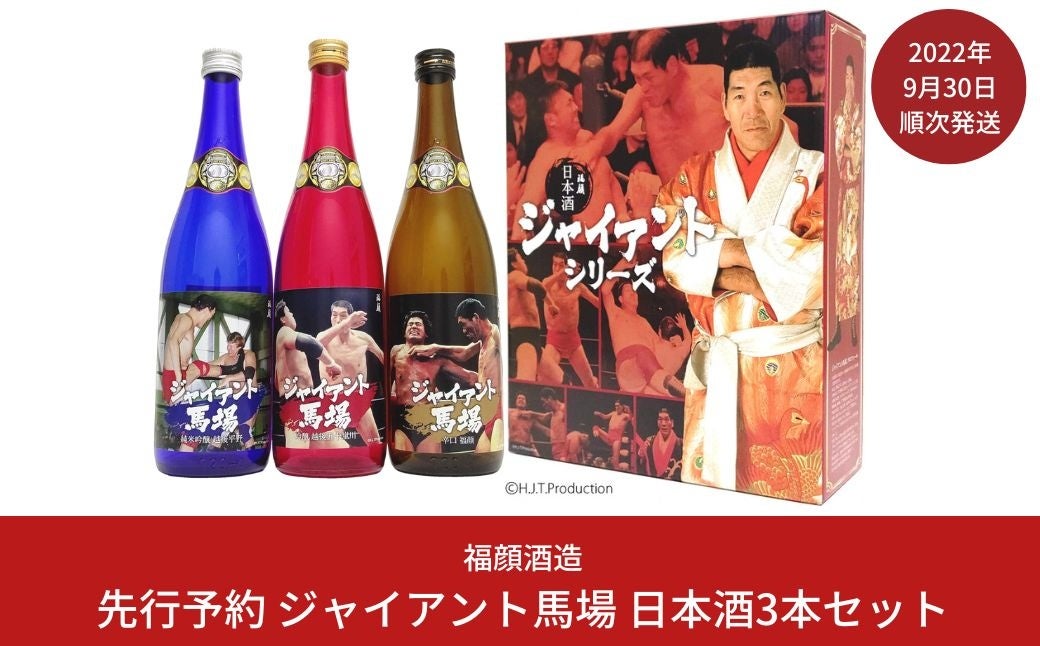 三条市の名誉市民である「ジャイアント馬場」をラベルに使用した三条市唯一の酒蔵「福顔酒造」の日本酒3本セットです。