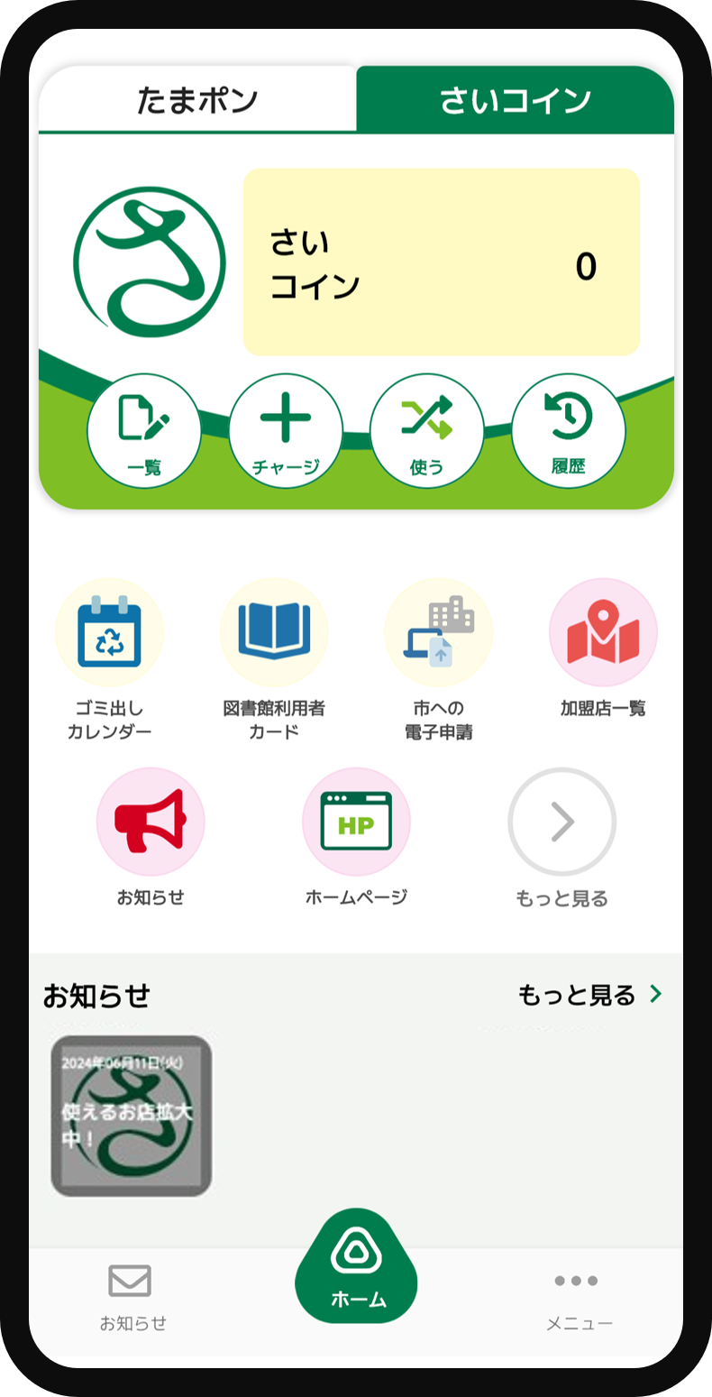 今後は、さいたま市の各種事業における給付などで、さいたま市限定のマネー機能「さいコイン」やポイント機能「たまポン」が活用されるとともに、その他の行政サービスや民間サービスとの連携も、本アプリに搭載される予定です。