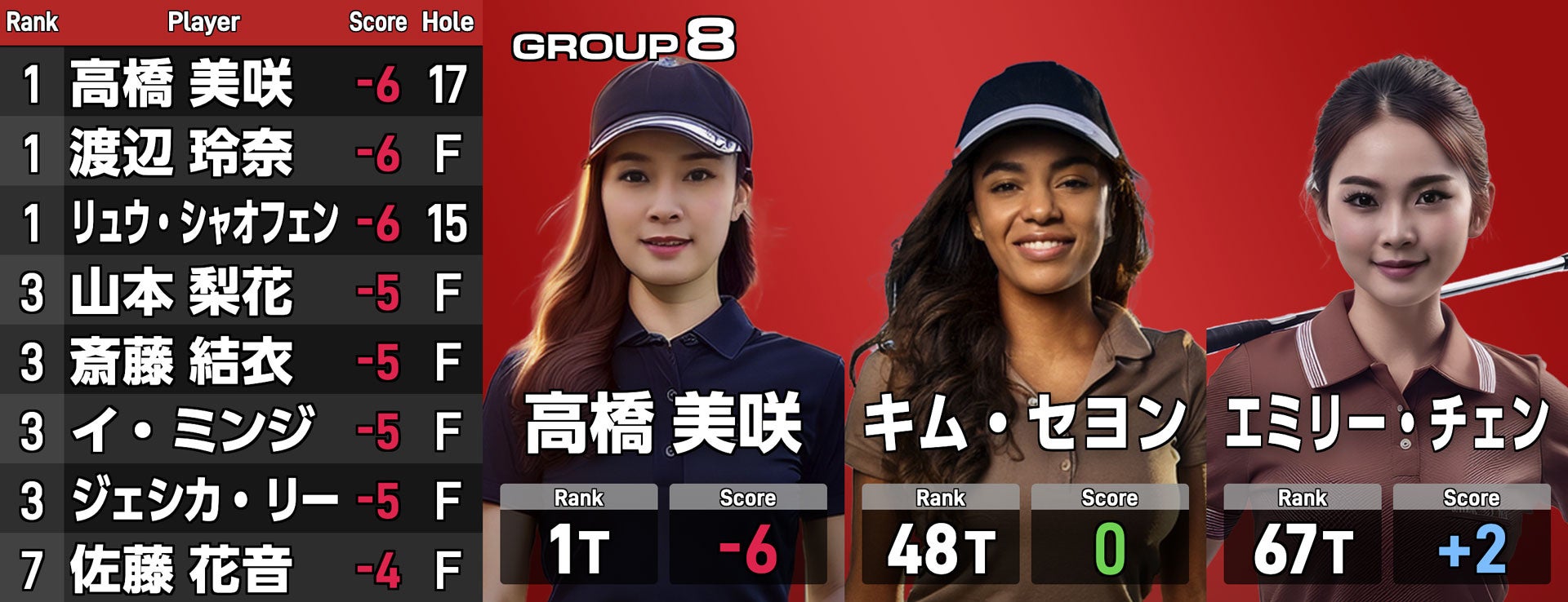 スポーツデータと連動し、自動で順位とスコアを表示。