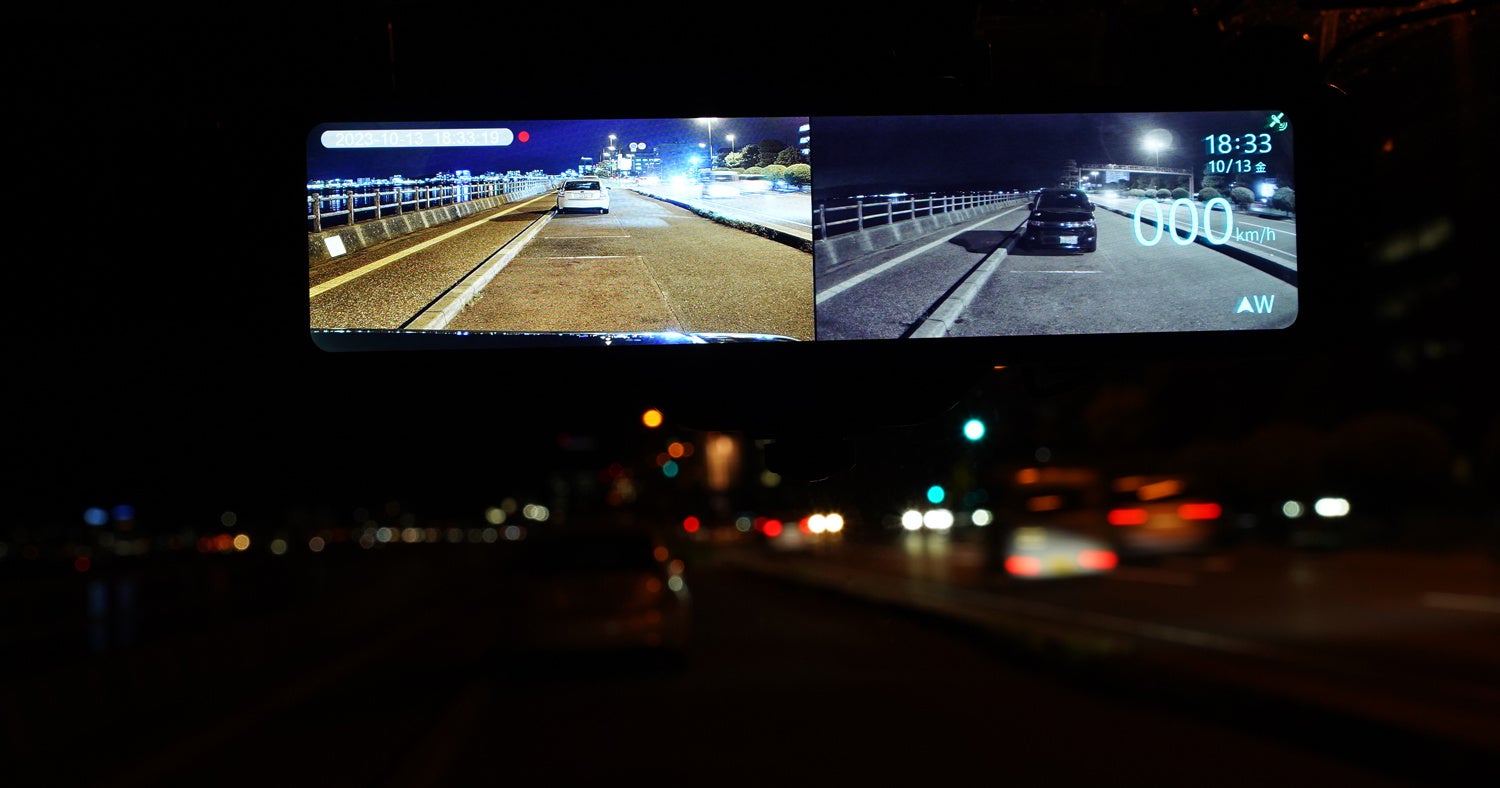 夜間、街灯の少ない道路やトンネルを走行している時や、建物の陰にある暗い駐車場でも、ナンバープレートや周囲の状況を記録。夜間の撮影に適したにSTARVIS™技術搭載ソニー製CMOSセンサー採用により、従来のドライブレコーダーに比べて極めて低い光量でも撮影可能な「ナイトサイト」に対応しています。