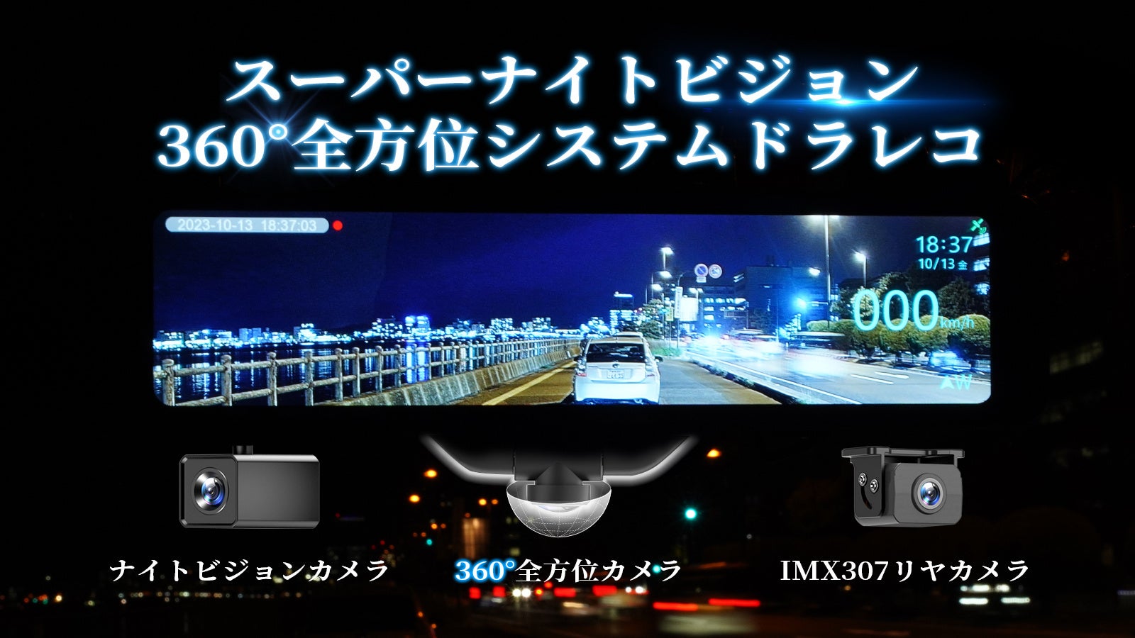 AKY-NV-360 = 「360°全方位記録」+「フルカラーナイトビジョン」+「11インチ・デジタルミラー」+「SONY製IMX307搭載リヤカメラ」。いざという時、あなたの強い味方になる!AKY-NV-360を選ぶことは、妥協のない安心な記録を選ぶことです。