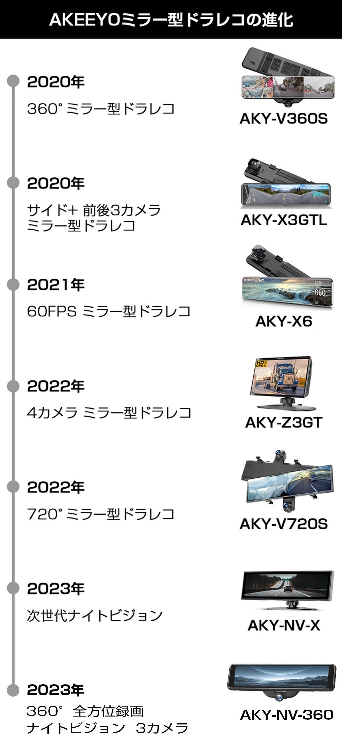 【AKEEYO最高峰作】3カメラ、3倍の安心!スーパーナイトビジョン+360度ビジョン搭載の革新次世代ドライブレコーダーAKY-NV-360がMakuakeにて応援総額220万円突破!