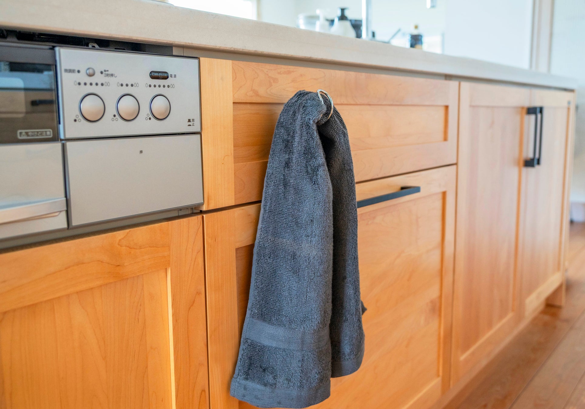 引き出しの開閉に連動してホルダーが動く設計により、タオルが引き出しに巻き込まれるのを防ぎます。開閉のたびに「タオルが挟まってしまう」というストレスを解消し、キッチンでの動作をよりスムーズにしてくれます。
