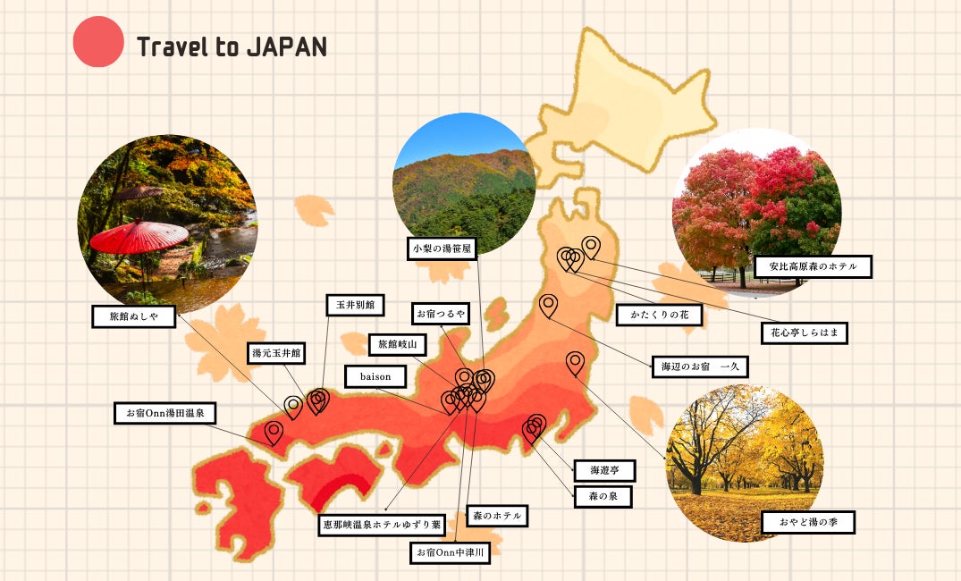 当社はで、自然豊かな立地に温泉旅館を展開しており、各地域ごとの季節の美しさをお楽しみいただけます。