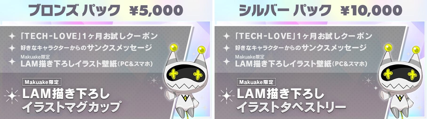 『テクノロイド』のファンの皆様(通称:てく民)から「#がんばれテクノロイド」というハッシュタグで、SNS上でたくさんの応援メッセージをいただきました。皆様の応援メッセージを励みにこの事態を全員で乗り越えるべく、本プロジェクトに挑戦させていただく運びとなりました。本プロジェクトのためにLAM氏が新しく描き下ろしたイラストを使用した応援広告の実施を目指し、「Makuake」限定グッズや限定イベントなどユニークなリターンを多数ご用意しております。