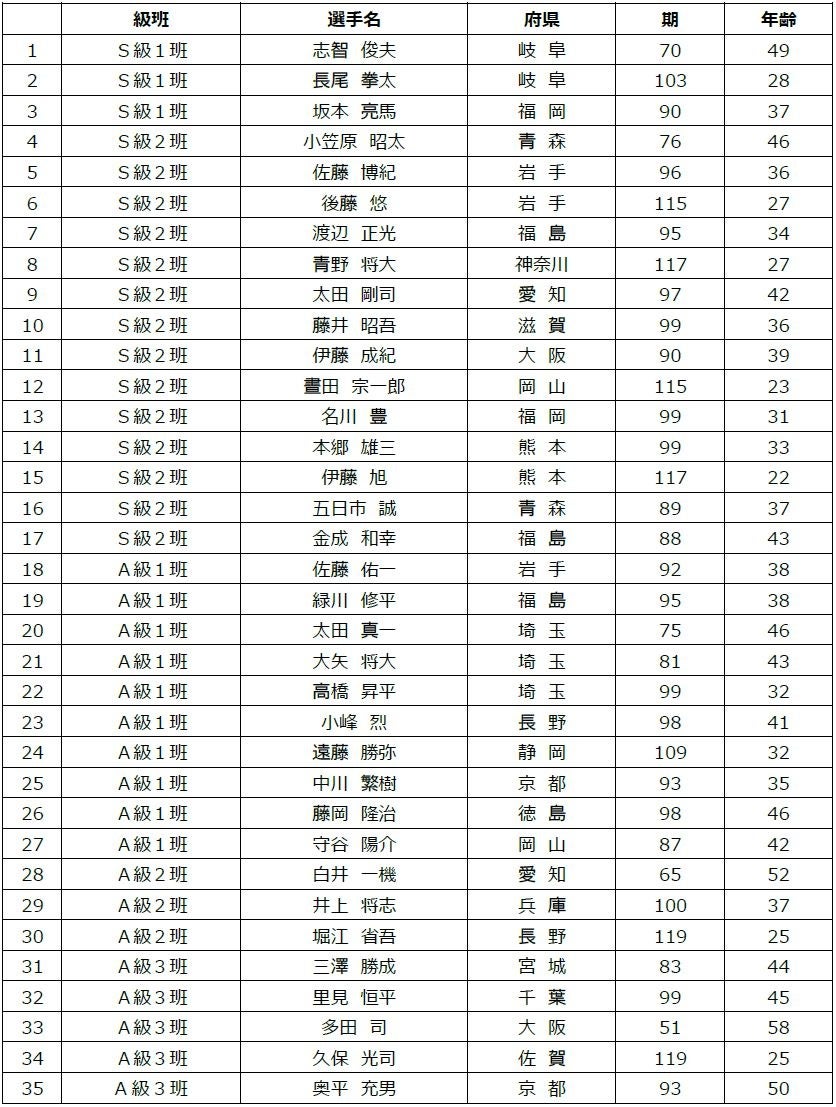 セカンドクォーター ラウンド2は過去PIST6優勝経験者が多数参戦。前開催優勝の藤井昭吾(滋賀/写真左)を筆頭に、晝田宗一郎(岡山)、青野将大(神奈川)、堀江省吾(長野)らの若手3人が揃い、初日から高いレベルのレースが期待できそうだ。