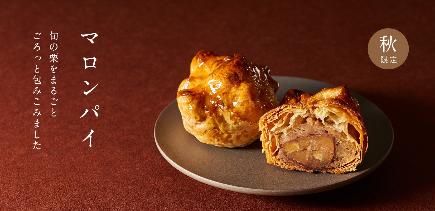 毎年「マロンパイ」の発売を心待ちにしてくださるお客様も多い、ロングセラー商品で、秋の収穫時に合わせて販売される特別な味わい。