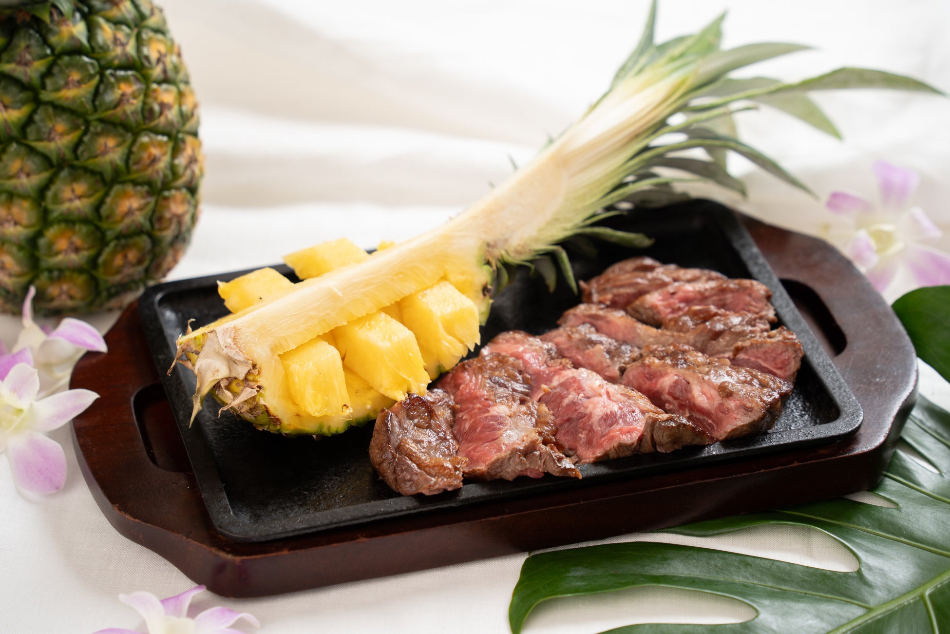 メニューに登場するパイナップルは、豊潤な甘さと香りが特徴の「Doleスウィーティオパイナップル」。格之進名物のステーキやハンバーグはもちろん、ドリンクやデザートまで、Doleスウィーティオパイナップルづくし。ここでしか味わえないパイナップルとお肉の競演を、ぜひご賞味ください。