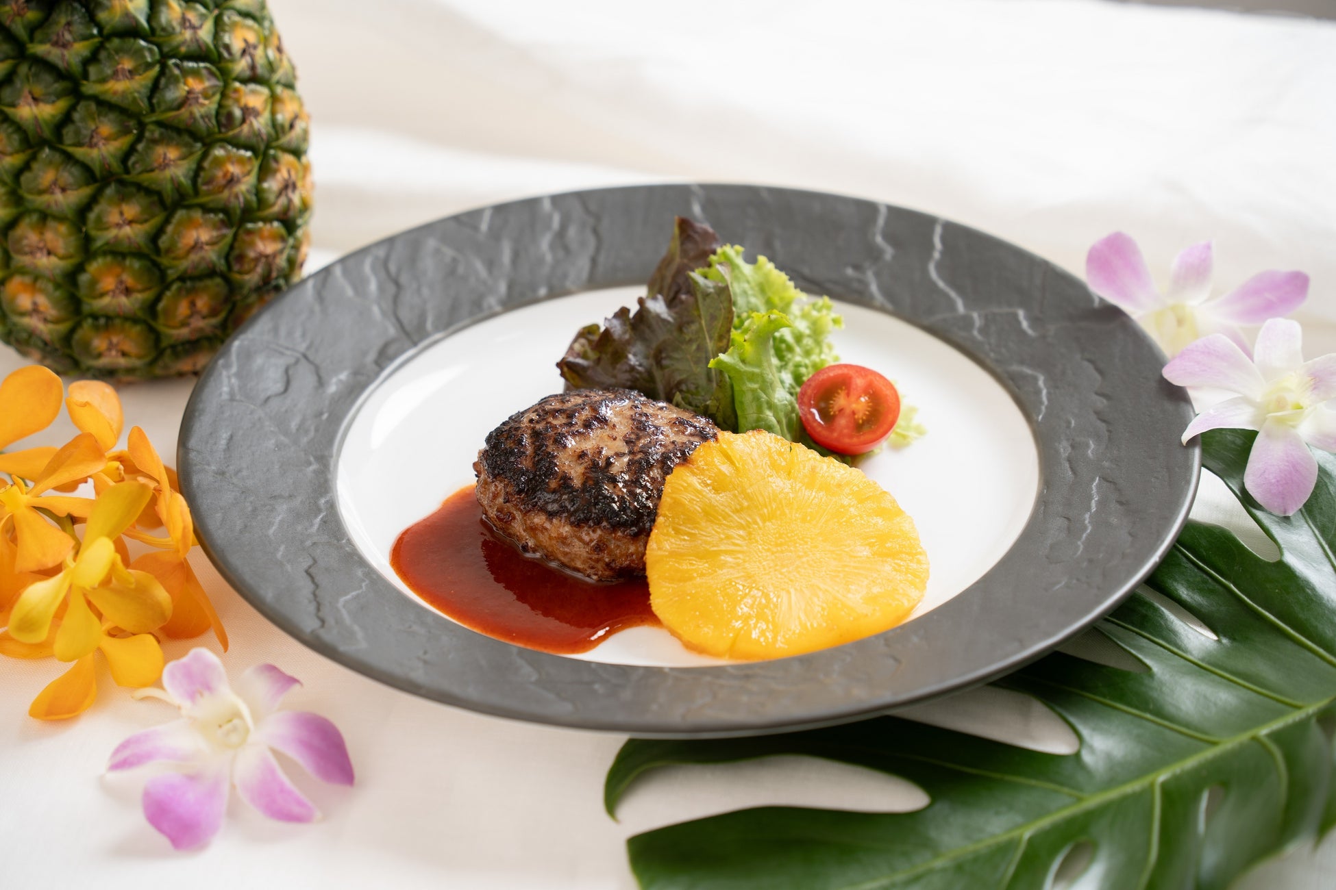 パイナップルに含まれる酵素「ブロメライン」は、肉のタンパク質を分解して柔らかくする働きがあると言われており、お肉との相性が抜群のフルーツ。“世界で一番、お肉に真剣”なお肉の専門家・格之進が運営する人気レストラン「和牛ハンバーグ&ステーキ 肉屋 格之進 F」と、「お肉とパイナップル」の魅力をお届けしたいとの想いが一致し、今回のコラボレーションが実現しました。
