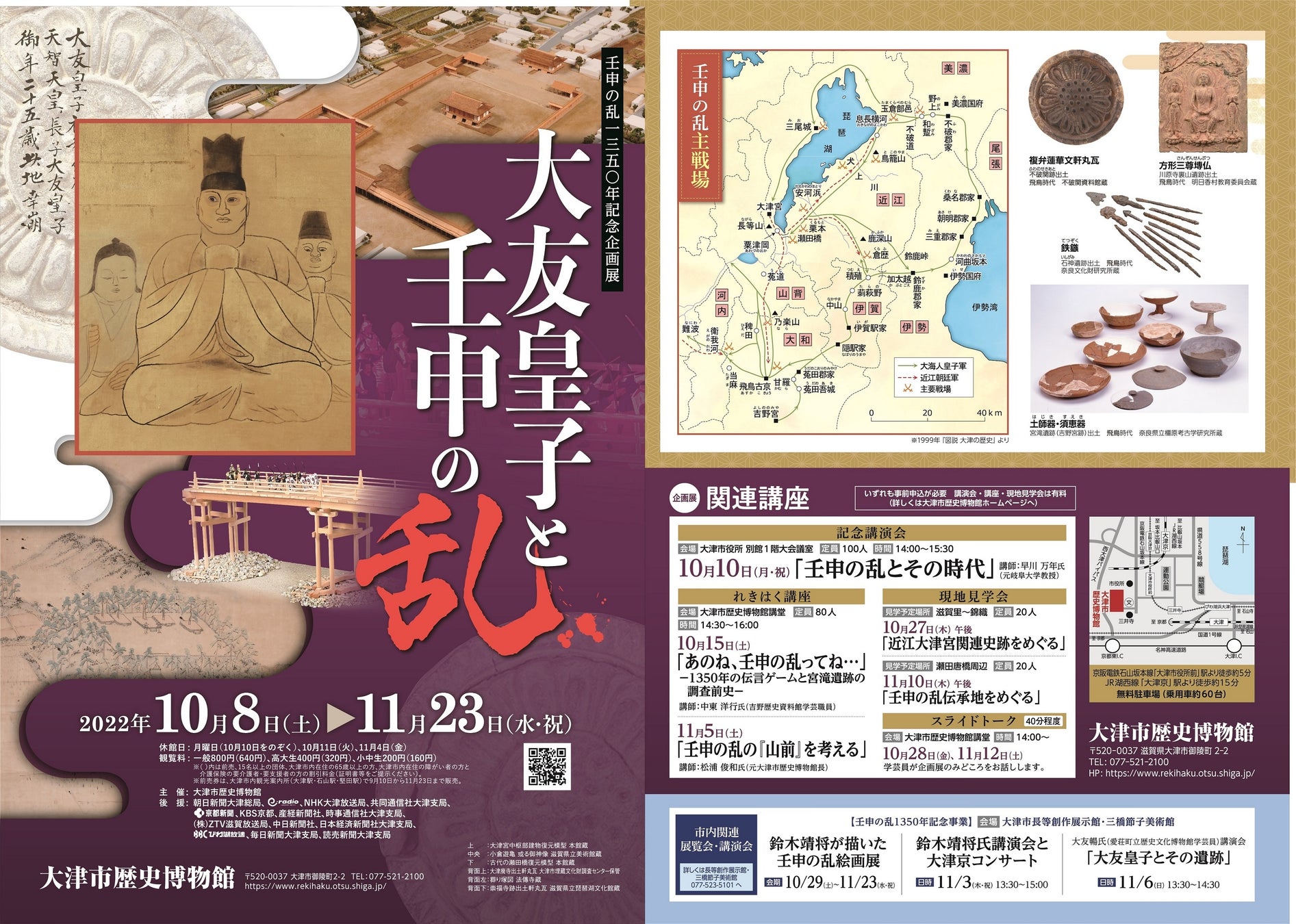 滋賀県 大津市歴史博物館では、壬申の乱1350年記念企画展として、「大友皇子と壬申の乱」を開催します。