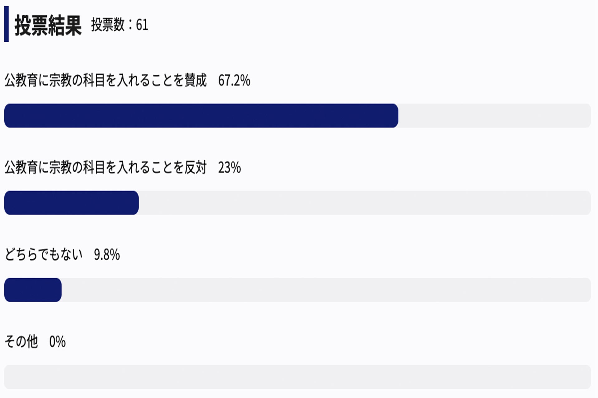 選択肢:・公教育に宗教の科目を入れることを賛成