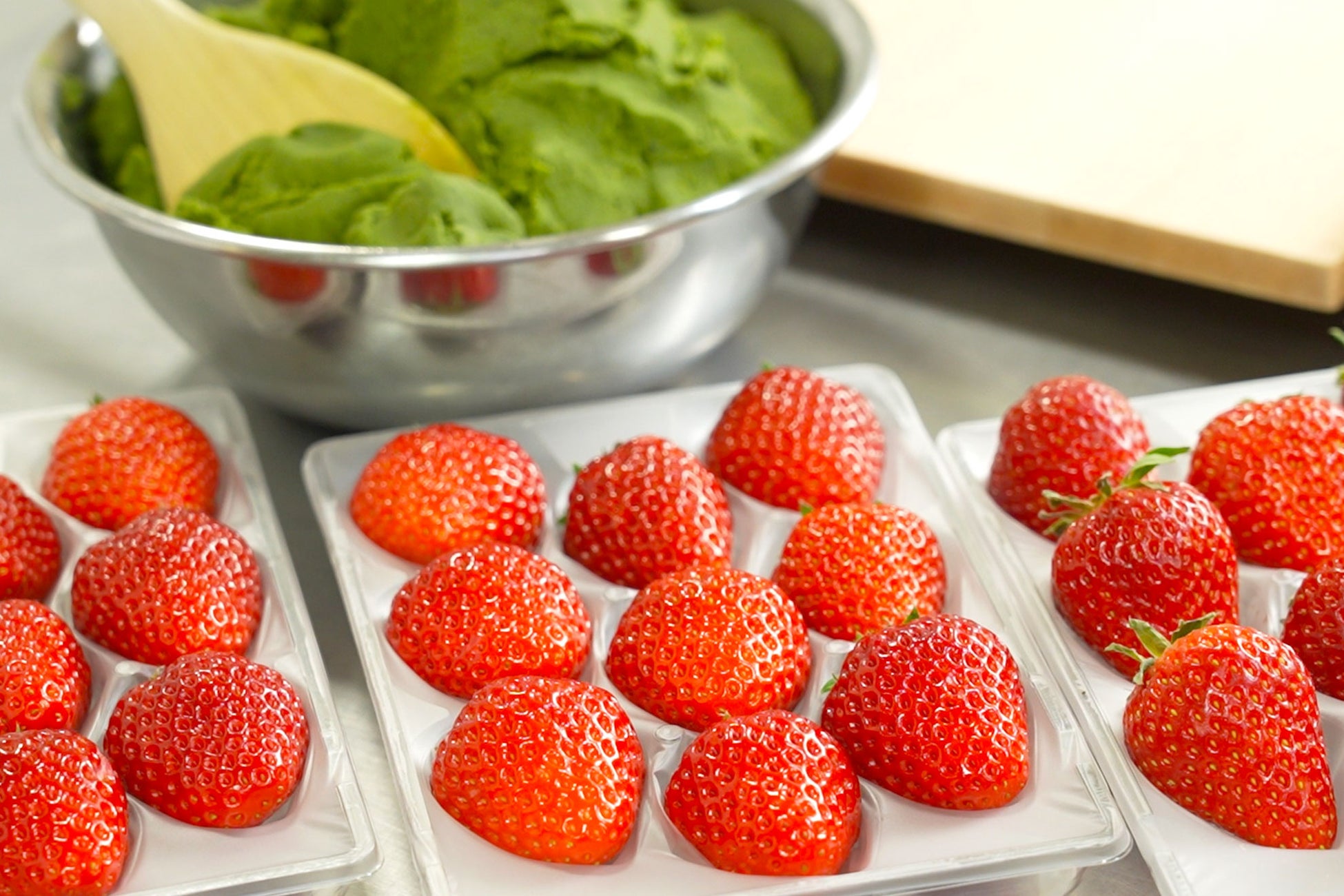 紅ほっぺのジューシーで爽やかな味わいに、すっきりとした抹茶餡が寄り添います。