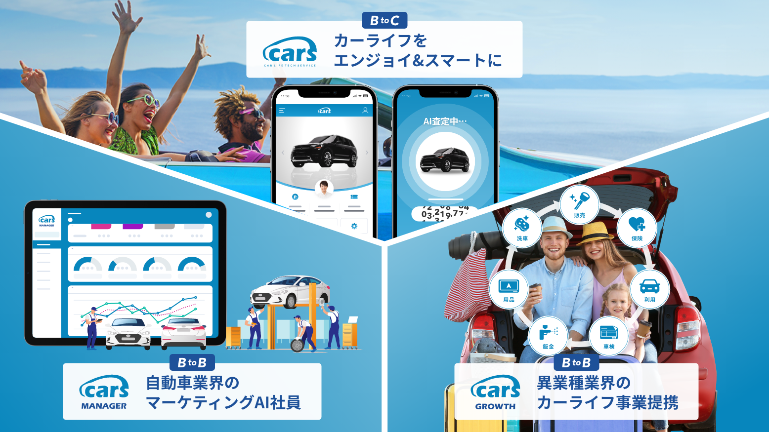 今回の資金調達を踏まえ、生活者のカーライフをエンジョイ&スマートに「cars (カーズサービス)」をはじめ、自動車業界のマーケティングAI社員「cars MANAGER(カーズマネージャー)」、異業種業界のカーライフ事業提携「cars GROWTH(カーズグロース)」、欲しいマイカーにスマート乗り換え「cars MARKET(カーズマーケット)」など全てのグローバルカーライフテックサービスに関する開発および推進を進めてまいります。