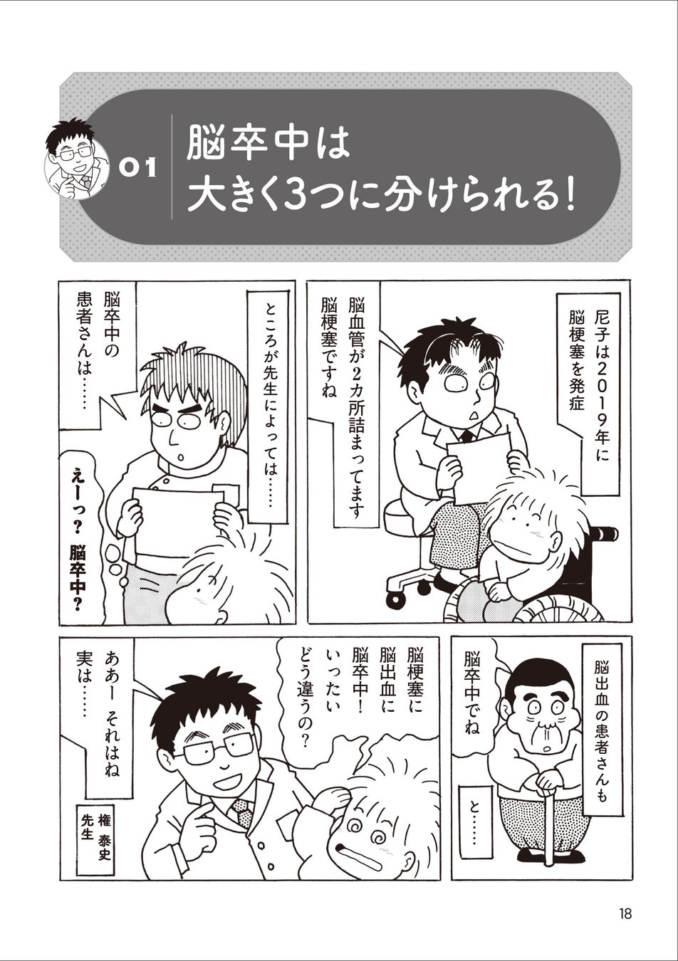 書籍名:尼子騒兵衛が専門家に学ぶ! 患者と家族のための マンガで学ぶ脳卒中――脳梗塞・脳出血・くも膜下出血