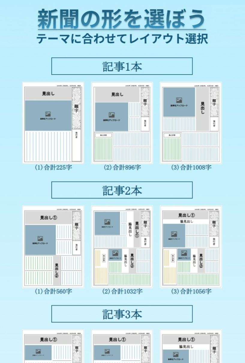 トライアル版からレイアウトの種類を増やし、より少ない文字数でも紙面が完成するようになりました。