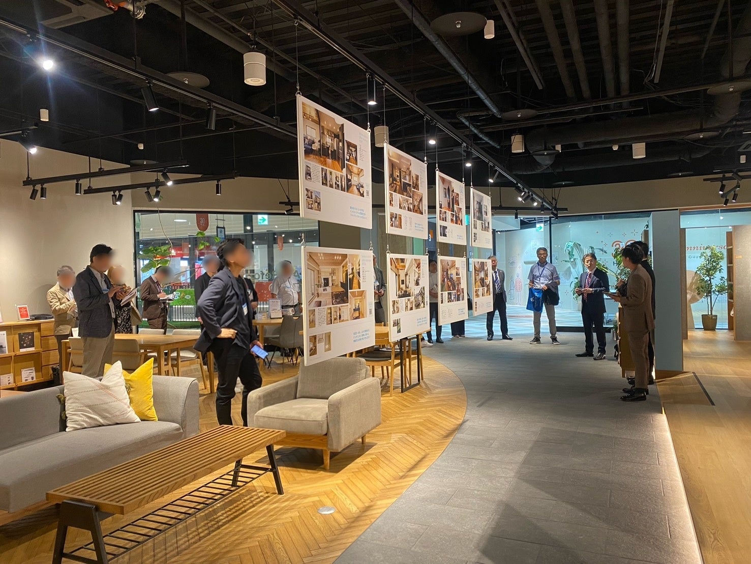 ⎿顕在層・潜在層の集客に特化した支店として、アートリフォームが得意とする、リモデル・リノベーションゾーンを検討されている顧客に合わせた空間展示、イベントを通じた集客方法についてご覧いただきました。また、オフィスも見学いただき、チームビルディングを目的としたフリーアドレスのデスクなどを紹介しました。