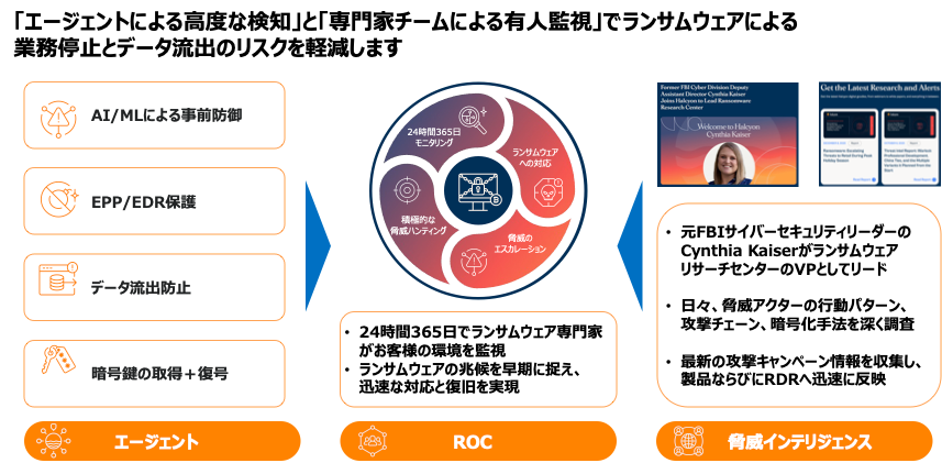 このようにランサムウェア対策が重要な経営課題となる中、当社は「Halcyon」の提供を通じて、お客様のランサムウェア対策強化と事業継続性の確保を支援してまいります。