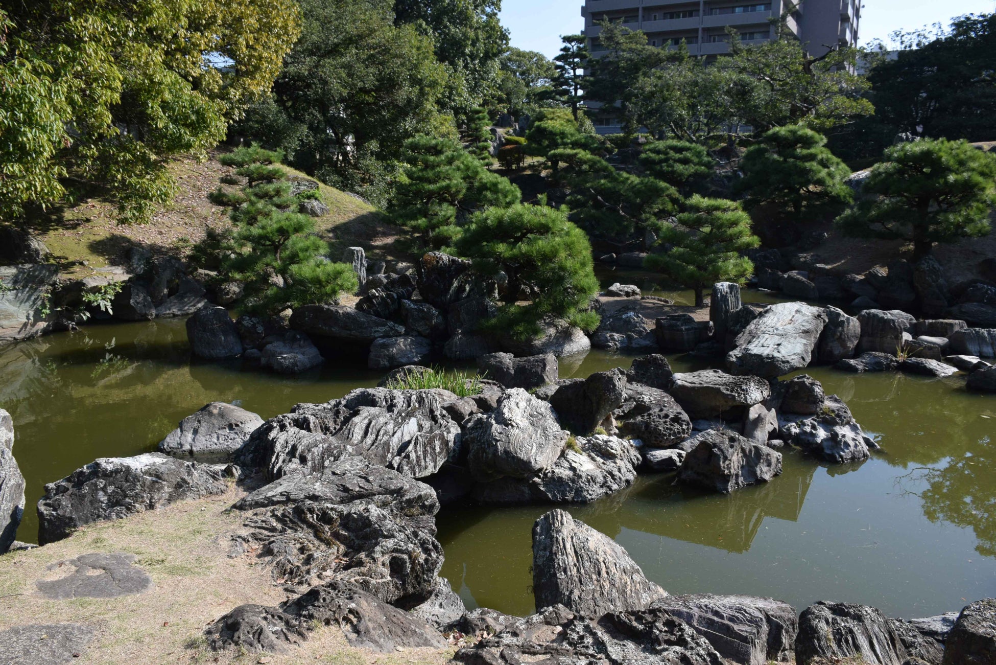 昭和16年12月13日に国の名勝に指定されました。この庭園は、旧徳島藩主蜂須賀公の居間や表書院の庭として造られたものです。武将で茶人の上田宗箇作庭の枯山水庭(書院の庭)と築山泉水庭(居間の庭)の二庭からなる観賞式と池泉廻遊式を兼ね具えた桃山様式を伝える名庭です。
