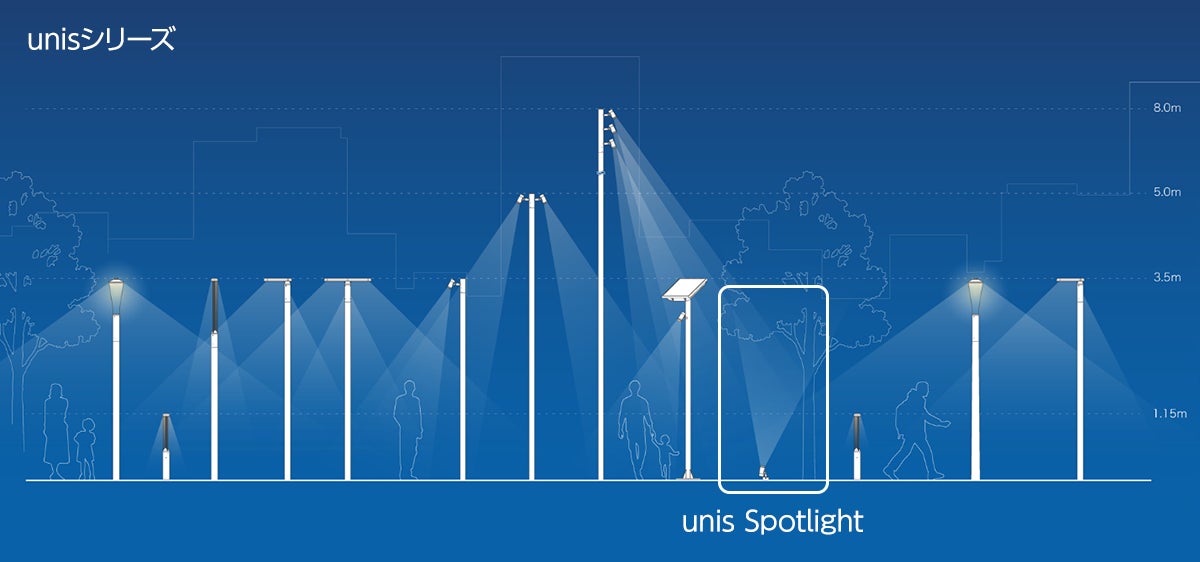 岩崎電気は、景観街路照明のフラッグシップモデル「unis(ユニス)」シリーズに「スポットライト」12形式を新ラインアップ。2月7日より発売します。