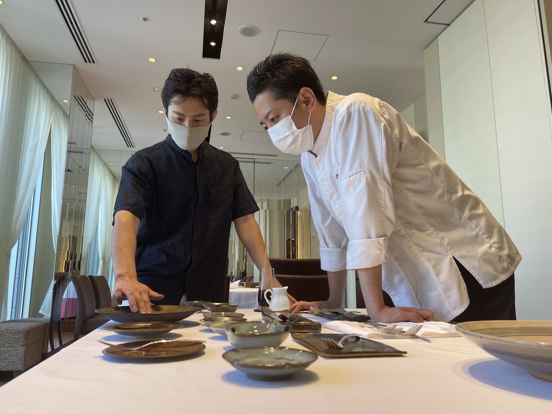 「料理人にとって器とは大切なものです。食材や料理が器を求め、また逆に器から料理のアイデアが生まれることもあります。今回、高取焼宗家の高取春慶さんの素晴らしい器が新たに加わりました。テーブル上の器と料理の共演を、ぜひレストランでお楽しみください」(窪津朋生)