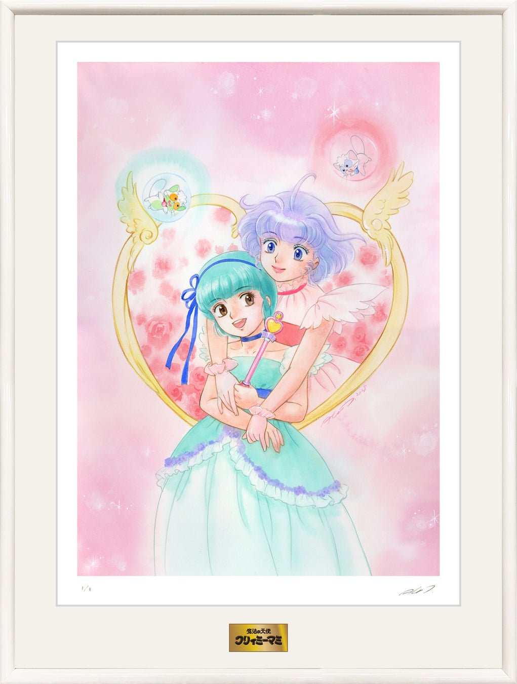 世界限定8枚のみのスペシャル版は、原画原寸サイズでパール絵具の粒子を全体に吹きかけた豪華仕様。ラグジュアリーなパールのマットにゴールドのプレートが付き、額裏にはクリィミーマミのラフスケッチとサイン、そしてご購入いただいたお客様のお名前が高田明美先生の直筆で入る、クリスマスの特別仕様です。