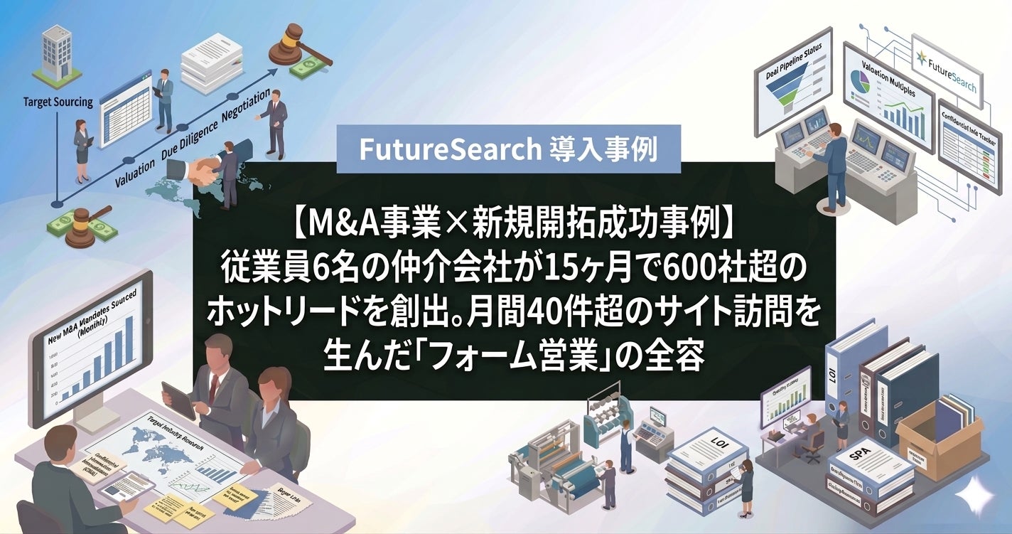 【M&A事業×新規開拓成功事例】従業員6名の仲介会社が15ヶ月で600社超のホットリードを創出。月間40件超のサイト訪問を生んだ「フォーム営業」の全容
