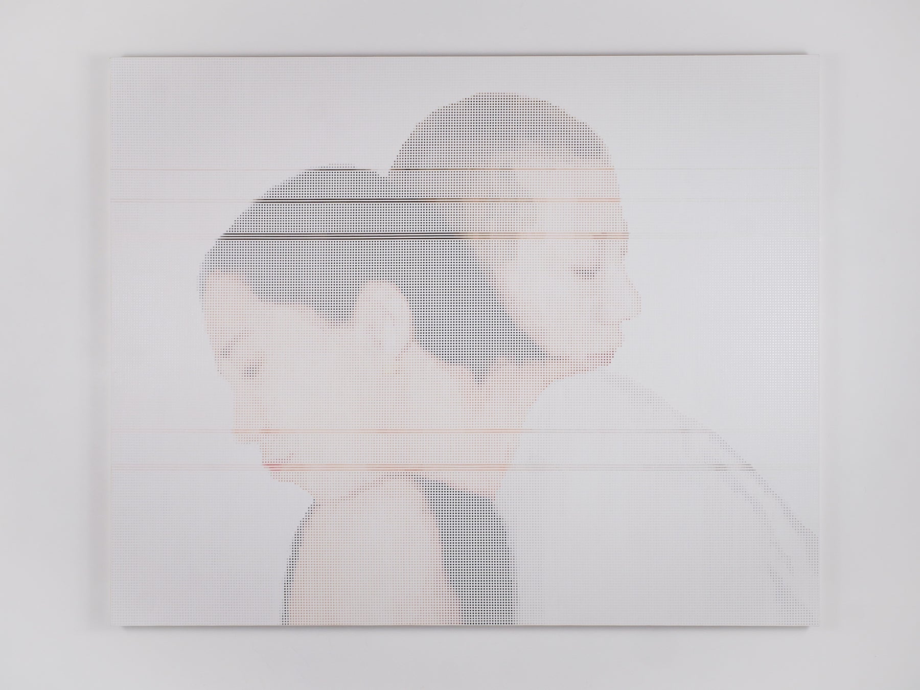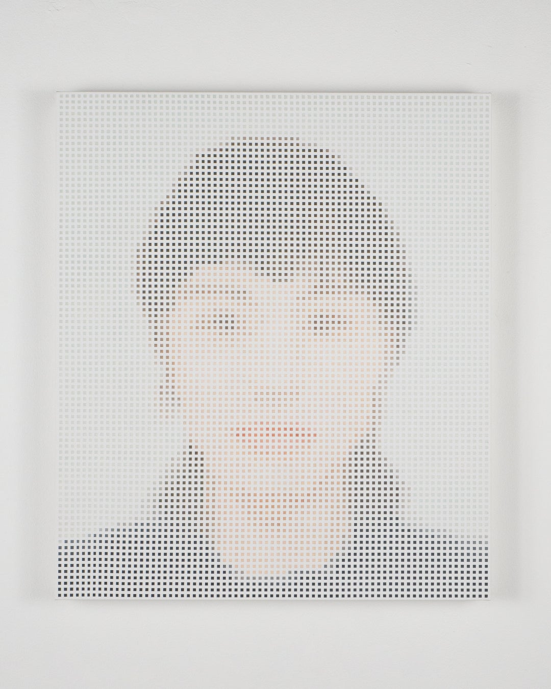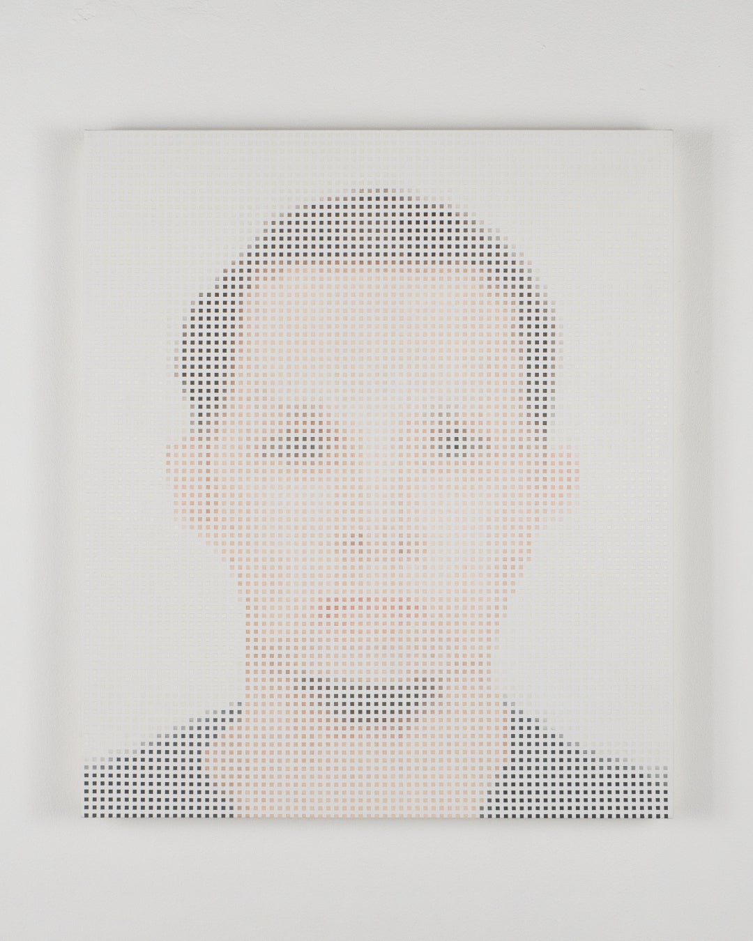 鑑賞者が画面から隔たり、ドットの集合体が鑑賞者の目で統合されることによって人物のイメージを生成すること。つまりこの作品の属性、および我々がいつも他者からの疎隔により呼び起こされていること。そしてイメージの根拠を探そうと近づくほどに、人物像は壊れ、絵画の恥部を目の当たりにすること。