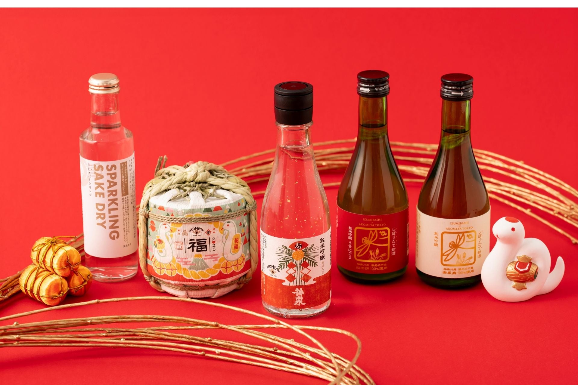 毎年人気のアコメヤ限定デザインの豆樽をはじめとする華やかな日本酒が数量限定で勢揃い。金箔が舞う祝い酒や、紅白ラベルの華やかな純米吟醸酒、お正月のお祝いにぴったりなスパークリング清酒など、ミニサイズの手軽な銘酒を新年の食卓に。