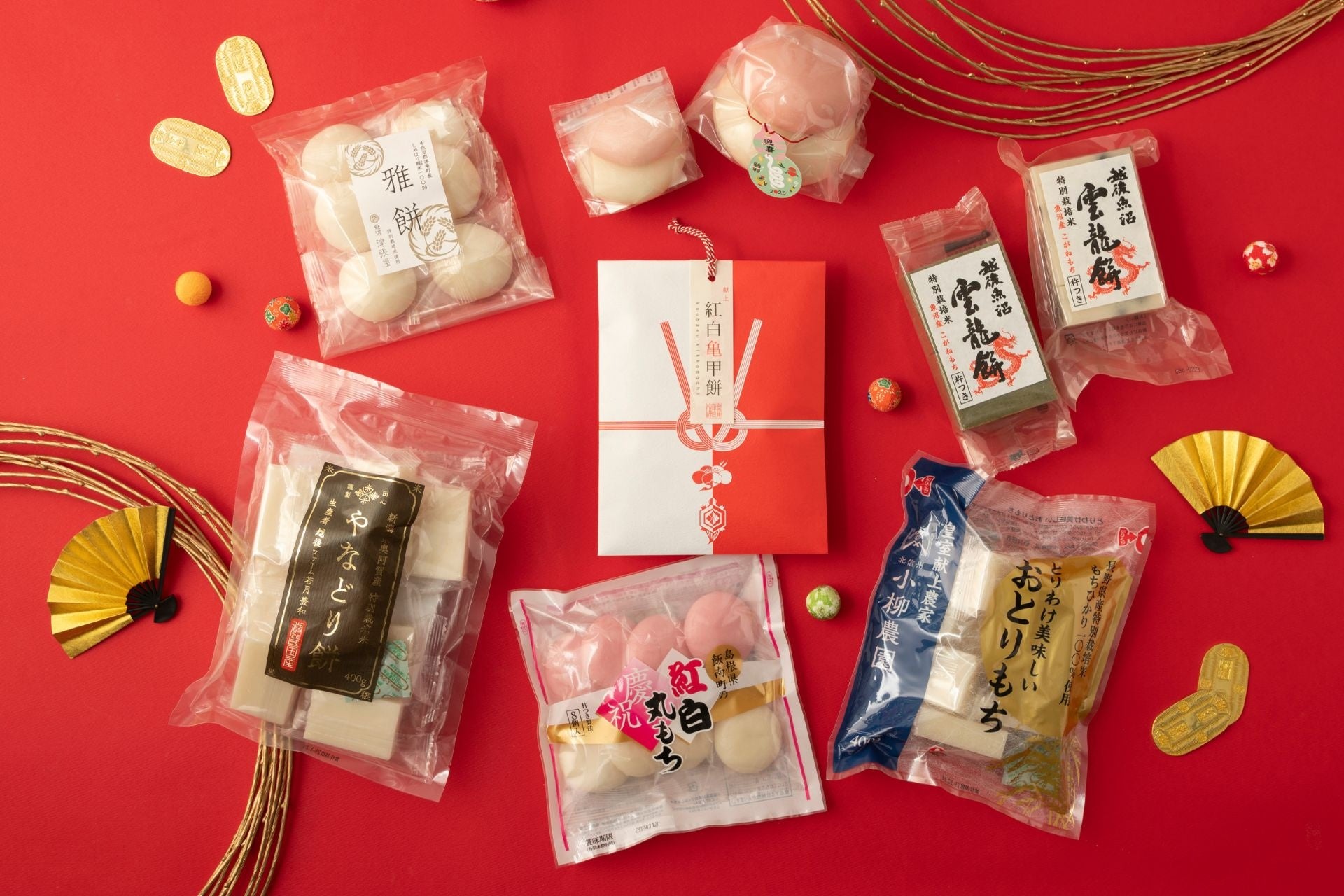亀を象り、長寿と幸せを願う気持ちがこもった紅白餅はご家庭で簡単に亀の形に「ぷくっ」と膨らむように細工した高度な技法が施されています。お正月のお雑煮に浮かべる縁起餅におすすめの逸品です。