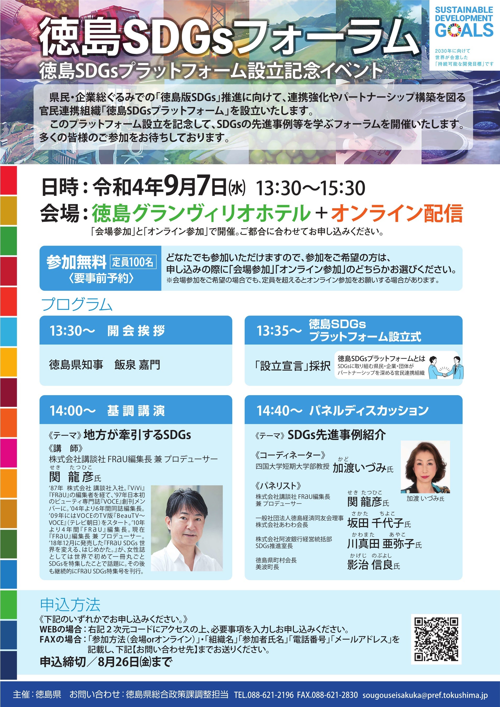「徳島SDGsプラットフォーム(仮称)」の設立及び「徳島SDGsフォーラム」の開催について