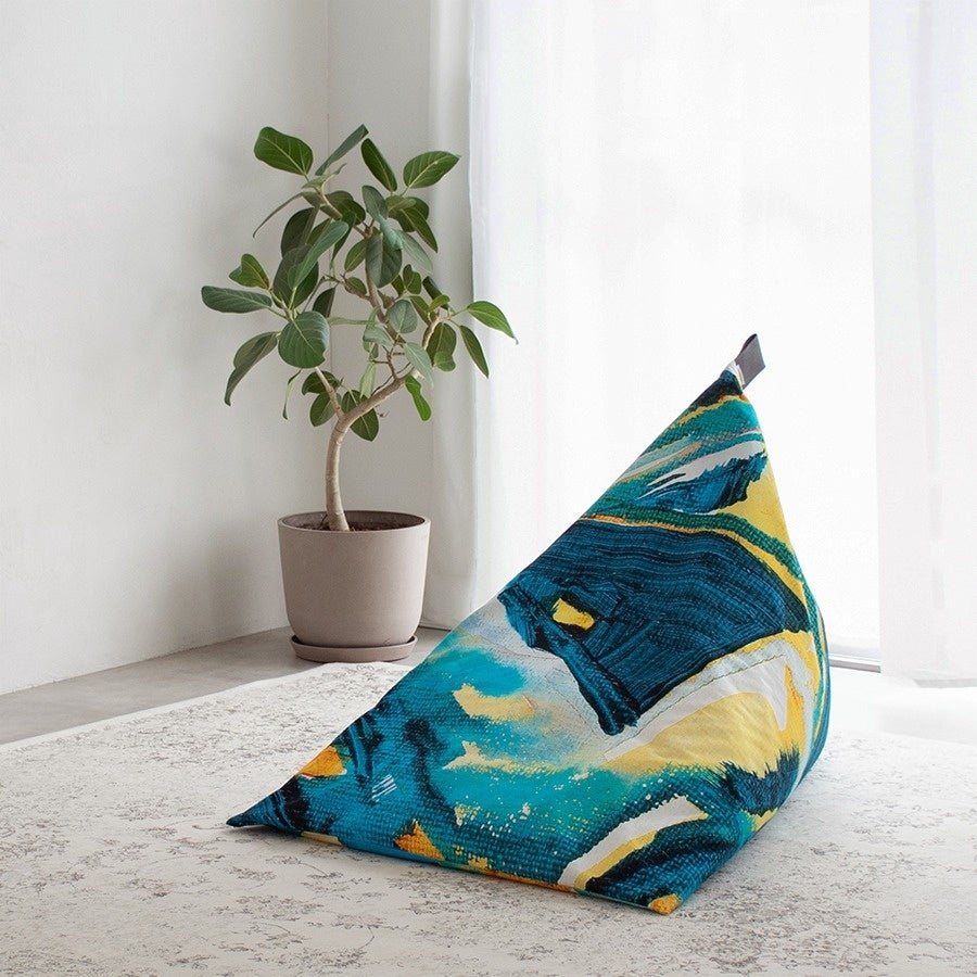 体勢に合わせて変形するビーズクッション「tetra(テトラ)」。どんなお部屋にも馴染み、インテリアのワンポイントとしてくつろぎスペースを彩ります。